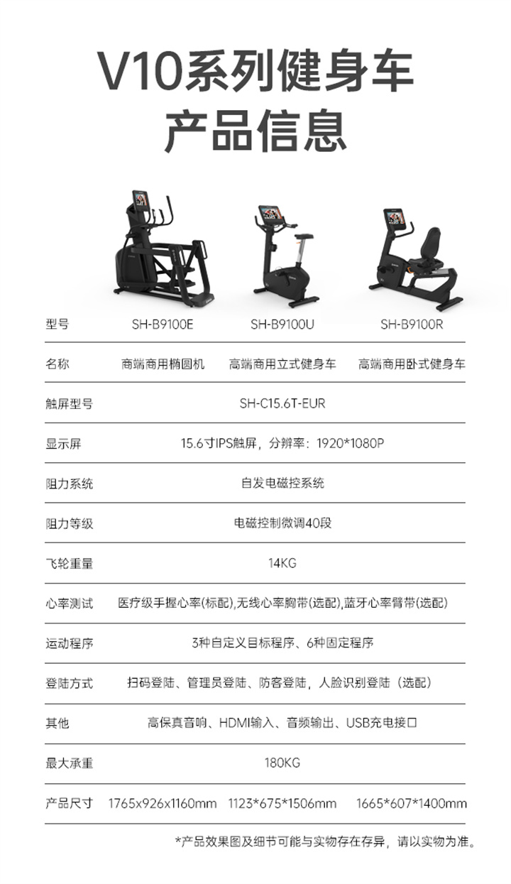 舒华立式商用健身车SH-B9100U(V10)触屏版拥有超大显示和操作屏幕, 可以任意设置阻力、时间和距离等参数,还可以即时显示心跳和转速等数据,同时,SH-B9100U提供多项科学运动处方,更轻松掌握运动节奏。